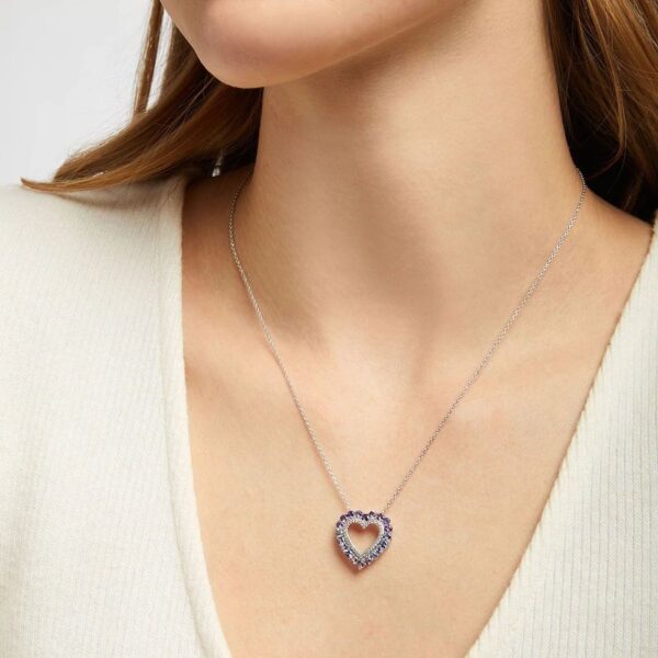 Vibrant Shades Amethyst, Tanzanite, White Sapphire Heart Necklace Sterling Silver 18″